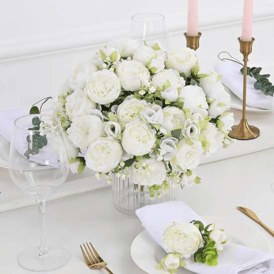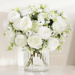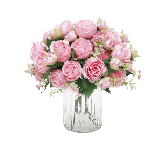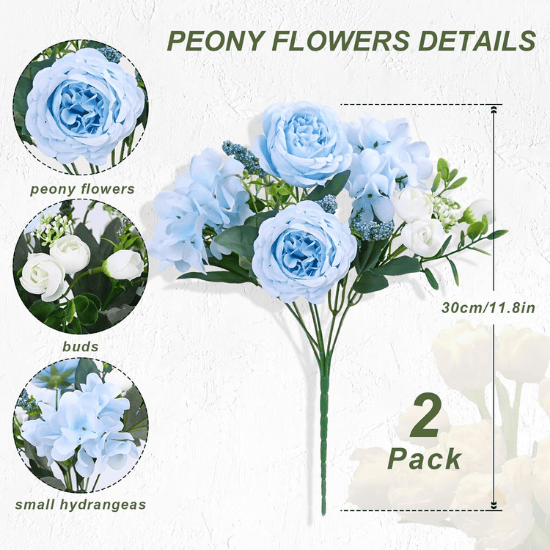 Crafted from high-quality silk fabric with natural-looking leaves, these faux peonies are paired with durable plastic stems reinforced with flexible wire for easy shaping and arrangement.