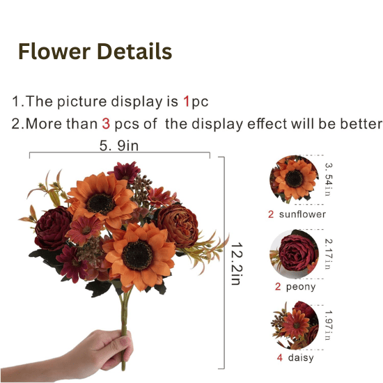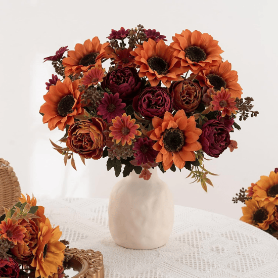 These faux sunflowers bring cozy seasonal beauty to your home and are ideal for fall décor, weddings, parties, Halloween, Thanksgiving, Harvest Festival celebrations, and everyday indoor styling.