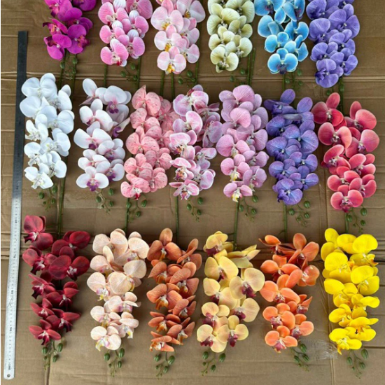 Each orchid branch is crafted from high-quality silk fabric with vibrant, natural-looking colors. The stems are made from durable plastic reinforced with a flexible steel wire core, allowing you to bend and shape them easily for custom arrangements.